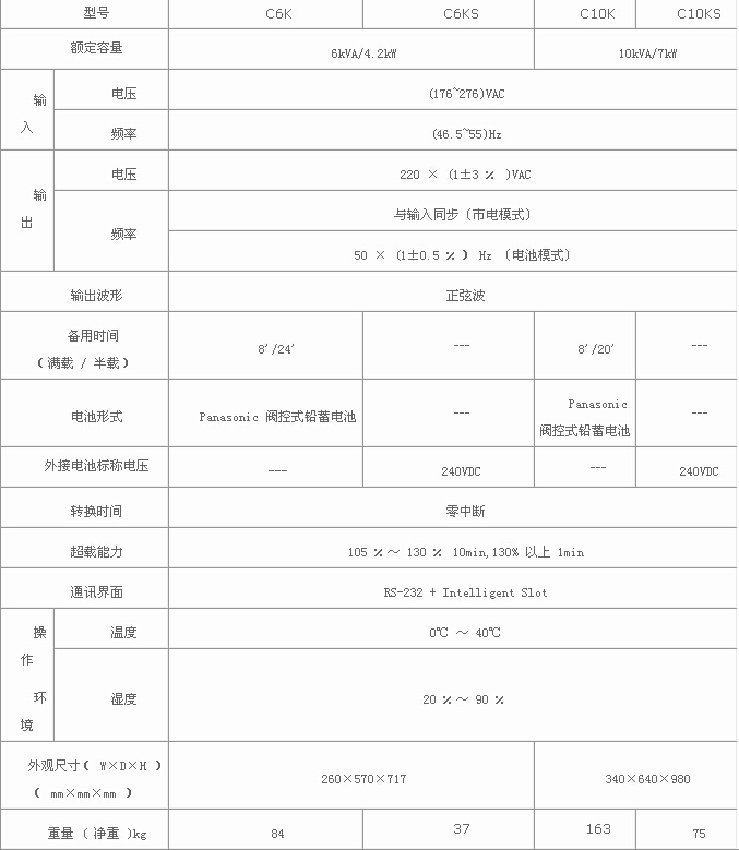 零转换时间  当市电停电或复电时,UPS 在市电模式与电池模式之间的切换是完全没有转换时间的,有效保证了负载运行的可靠性。